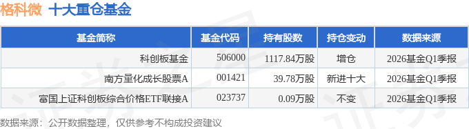 持有格科微最多的基金为科创板基金,目前规模为24.04亿元,最新净值1.2384(4月28日),较上一交易日下跌1.71%,近一年上涨52.1%。该基金现任基金经理为郑晓曦。
