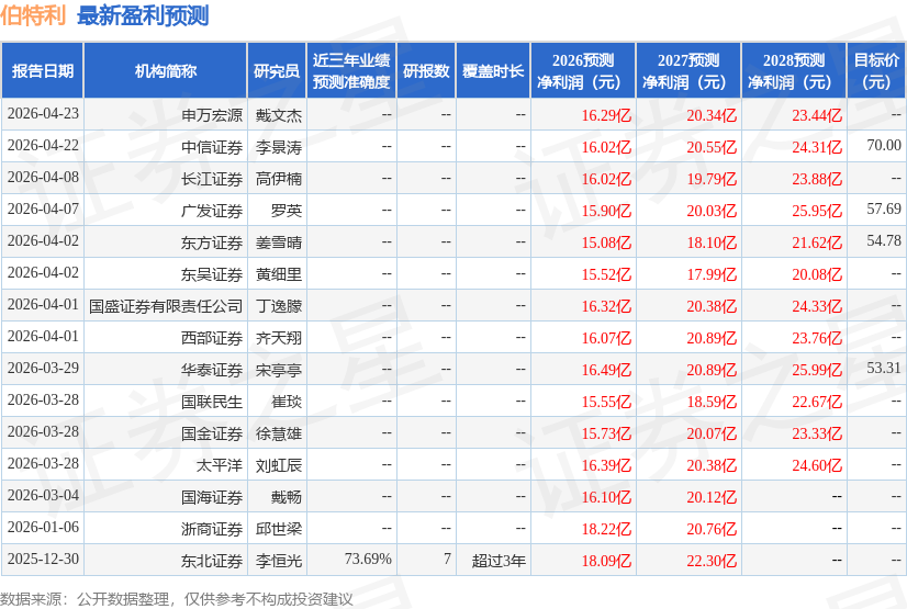 证券之星数据中心根据近三年发布的研报数据计算,东北证券李恒光研究员团队对该股研究较为深入,近三年预测准确度均值为73.69%,其预测2026年度归属净利润为盈利18.09亿,根据现价换算的预测PE为14.96。