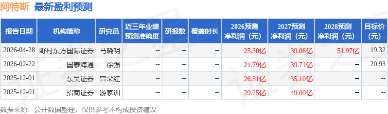 最新盈利预测明细如下: