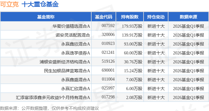 持有可立克最多的基金为华夏价值精选混合A,目前规模为10.67亿元,最新净值2.0335(4月28日),较上一交易日下跌0.77%,近一年上涨36.47%。该基金现任基金经理为朱熠。