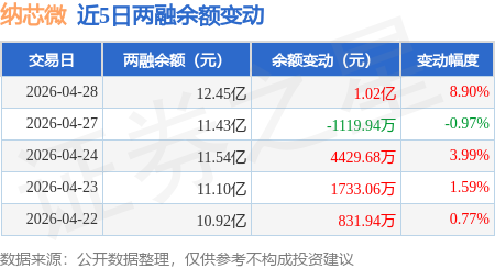 证券之星消息,4月28日,纳芯微(688052)融资买入1.86亿元,融资偿还8445.17万元,融资净买入1.02亿元,融资余额12.39亿元,当日融资净买入排名第48,近20个交易日中有15个交易日出现融资净买入。