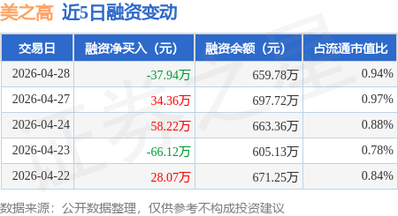 证券之星消息,4月28日,美之高(920765)融资买入66.1万元,融资偿还104.04万元,融资净卖出37.94万元,融资余额659.78万元。