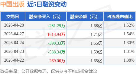 证券之星消息,4月28日,中国出版(601949)融资买入662.45万元,融资偿还943.75万元,融资净卖出281.29万元,融资余额1.68亿元。