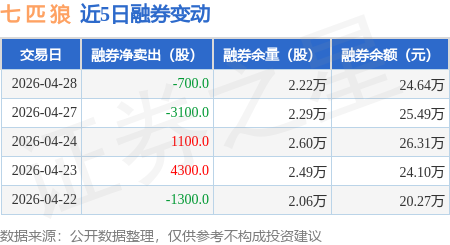 证券之星消息,4月28日,七 匹 狼(002029)融资买入4062.92万元,融资偿还4359.79万元,融资净卖出296.87万元,融资余额4.43亿元。