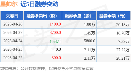 融券方面,当日融券卖出1400.0股,融券偿还0.0股,融券净卖出1400.0股,融券余量1.59万股。