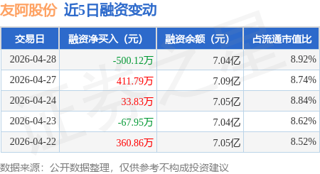 证券之星消息,4月28日,友阿股份(002277)融资买入1050.24万元,融资偿还1550.36万元,融资净卖出500.12万元,融资余额7.04亿元。