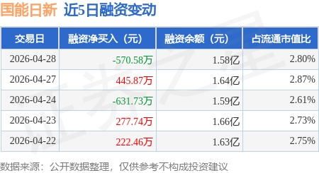 证券之星消息,4月28日,国能日新(301162)融资买入896.45万元,融资偿还1467.04万元,融资净卖出570.58万元,融资余额1.58亿元。