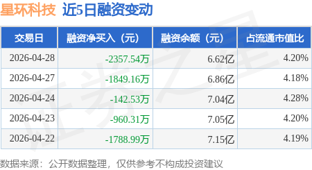证券之星消息,4月28日,星环科技(688031)融资买入6399.78万元,融资偿还8757.32万元,融资净卖出2357.54万元,融资余额6.62亿元。