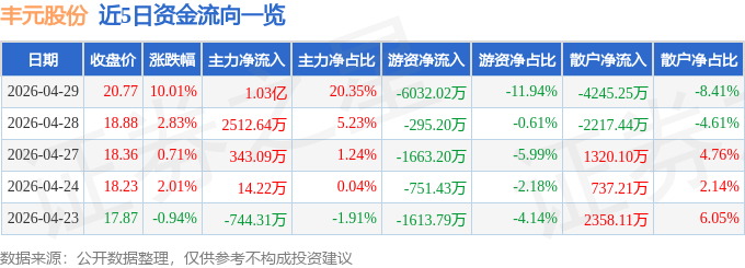 证券之星消息,丰元股份4月29日涨停收盘,收盘价20.77元。该股于9点32分涨停,3次打开涨停,截止收盘封单资金为7866.66万元,占其流通市值1.36%。