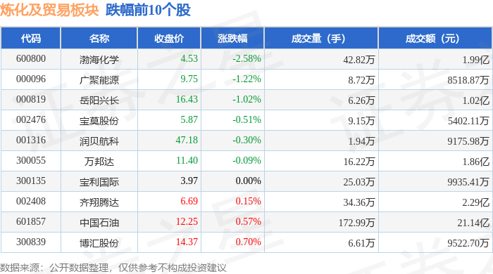 从资金流向上来看,当日炼化及贸易板块主力资金净流出8.89亿元,游资资金净流入3.4亿元,散户资金净流入5.49亿元。炼化及贸易板块个股资金流向见下表: