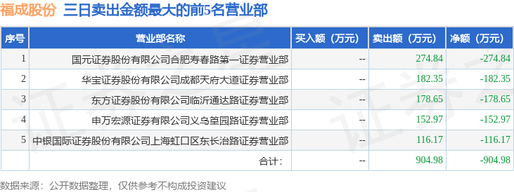 证券之星消息,沪深交易所2026年4月29日公布的交易公开信息显示,福成股份(600965)因非ST、*ST和S证券连续三个交易日内收盘价格跌幅偏离值累计达到20%的证券登上龙虎榜。此次是近5个交易日内第1次上榜。