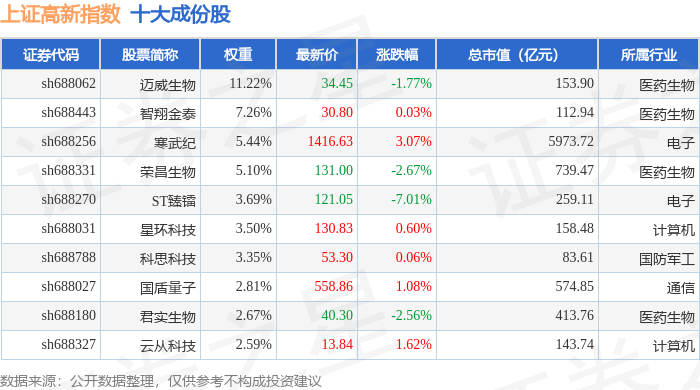 上证高新(000131)指数十大成份股详情如下: