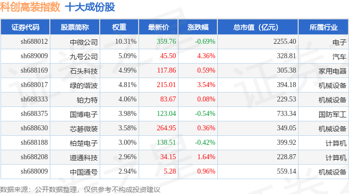 证券之星消息,4月29日,科创高装(000687)指数报收于1408.77点,涨1.01%,成交252.61亿元,换手率1.35%。当日该指数成份股中,上涨的有35家,凌云光以7.55%的涨幅领涨,下跌的有14家,航天宏图以8.88%的跌幅领跌。