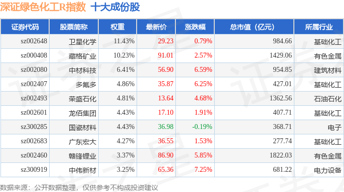 深证绿色化工R(470076)指数十大成份股详情如下: