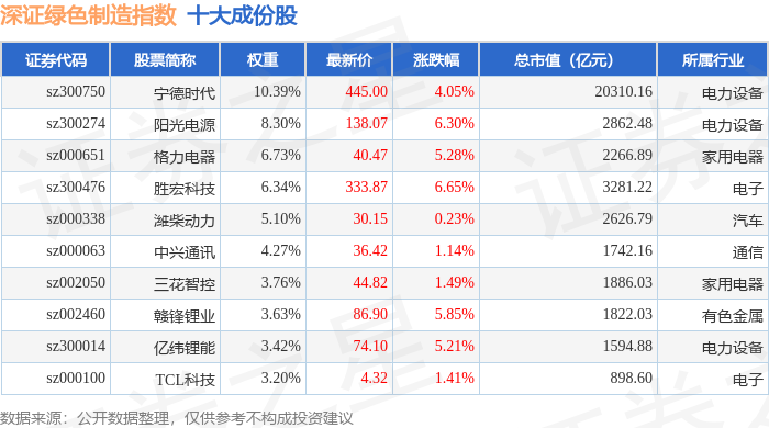 深证绿色制造(970069)指数十大成份股详情如下: