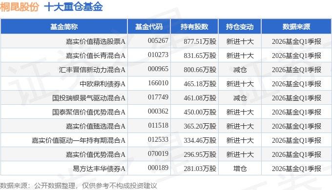 持有桐昆股份最多的基金为嘉实价值精选股票A,目前规模为28.99亿元,最新净值2.403(4月29日),较上一交易日上涨2.61%,近一年上涨19.16%。该基金现任基金经理为谭丽。