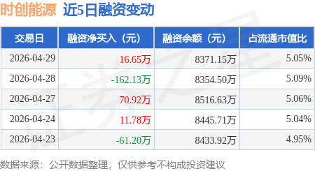 证券之星消息,4月29日,时创能源(688429)融资买入395.68万元,融资偿还379.03万元,融资净买入16.65万元,融资余额8371.15万元,近20个交易日中有11个交易日出现融资净买入。