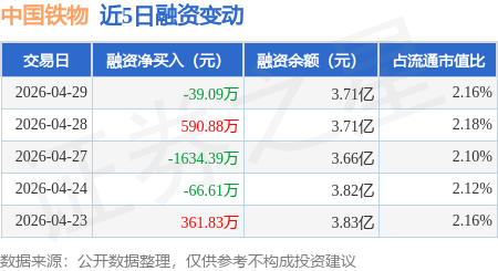 证券之星消息,4月29日,中国铁物(000927)融资买入2745.59万元,融资偿还2784.68万元,融资净卖出39.09万元,融资余额3.71亿元。