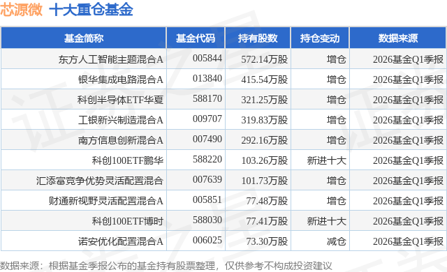 根据2026基金Q1季报公募基金重仓股数据,重仓该股的公募基金共99家,其中持有数量最多的公募基金为东方基金的东方人工智能主题混合A。东方人工智能主题混合A目前规模为10.29亿元,最新净值2.0712(4月29日),较上一交易日上涨0.8%,近一年上涨91.23%。该公募基金现任基金经理为严凯。严凯在任的基金产品包括:东方惠新灵活配置混合A,管理时间为2021年8月11日至今,期间收益率为81.77%;东方创新科技混合,管理时间为2023年11月13日至今,期间收益率为100.19%。