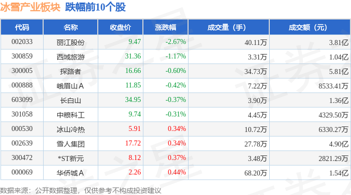 证券之星消息,4月30日冰雪产业板块较上一交易日上涨1.18%,中体产业领涨。当日上证指数报收于4112.16,上涨0.11%。深证成指报收于15107.55,下跌0.09%。冰雪产业板块个股涨跌见下表:
