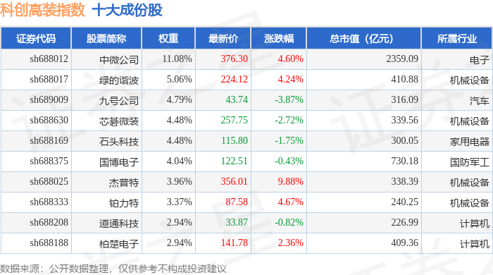 证券之星消息,4月30日,科创高装(000687)指数报收于1438.34点,涨2.1%,成交352.79亿元,换手率1.8%。当日该指数成份股中,上涨的有32家,凌云光以20.01%的涨幅领涨,下跌的有17家,宏华数科以10.34%的跌幅领跌。