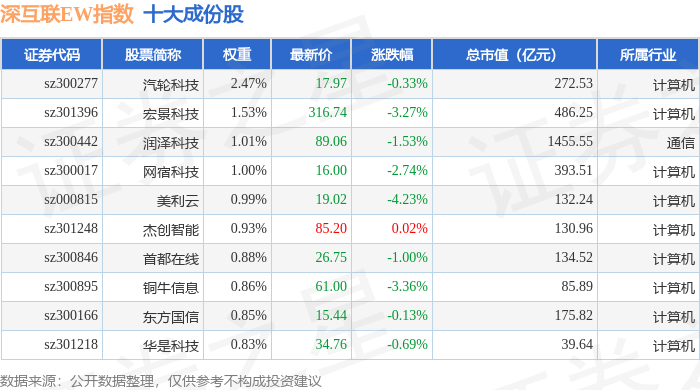 深互联EW(399677)指数十大成份股详情如下: