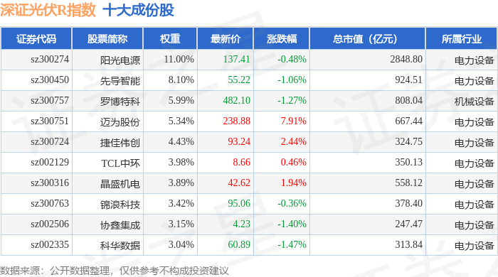 资金流向方面,深证光伏R(470035)指数成份股当日主力资金净流出合计35.2亿元,游资资金净流入合计10.07亿元,散户资金净流入合计25.13亿元。成份股资金流向详情见下表: