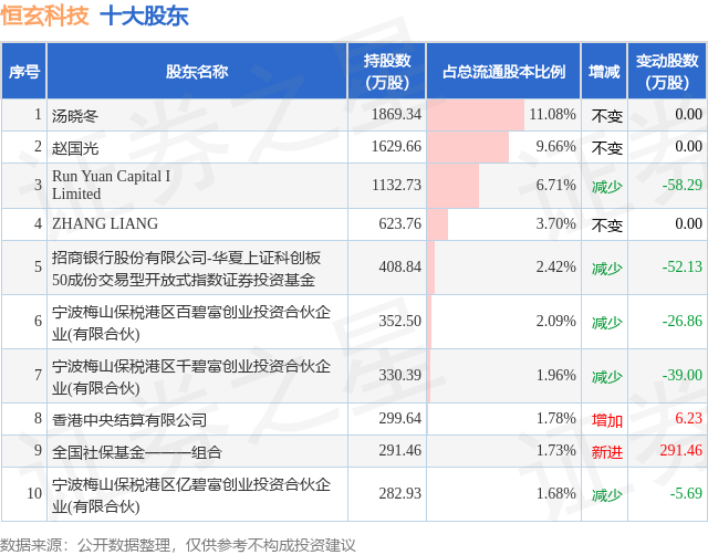 根据恒玄科技2026年一季报公布的十大股东详情如下: