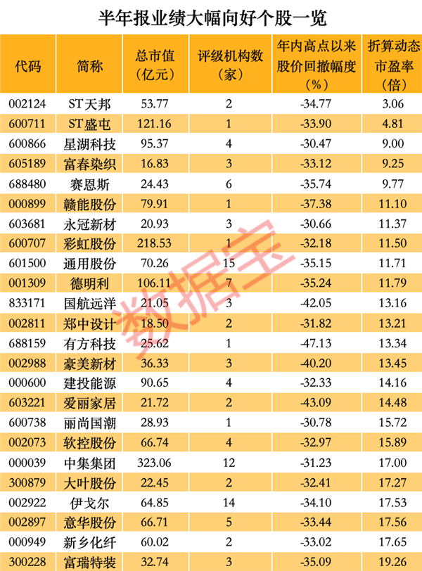 (原标题:半年报业绩暴增的高回撤低估值优质股出炉,市盈率最低仅3.06倍)