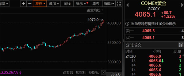 国庆中秋长假期间(10月1日至10月8日),国际金价大幅度上涨。截至10月8日21时,伦敦金现货盘中突破4000美元/盎司,再创历史新高,最高报价4049.64美元/盎司,假期期间累计上涨4.72%,COMEX黄金最高报价4072美元/盎司,累计上涨4.74%。除黄金外,其他有色金属品种亦有明显上涨,伦敦银现货累计上涨5.05%,LME铜累计上涨5.03%。