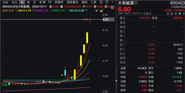 10月16日晚间,大有能源公告称,鉴于公司股票价格短期涨幅较大,股价剔除大盘和板块整体因素后的实际波动幅度较大,可能存在非理性炒作风险,公司敬请广大投资者注意二级市场交易风险,理性决策,审慎投资。经自查,截至本公告披露日,公司不存在应披露而未披露的重大事项。
