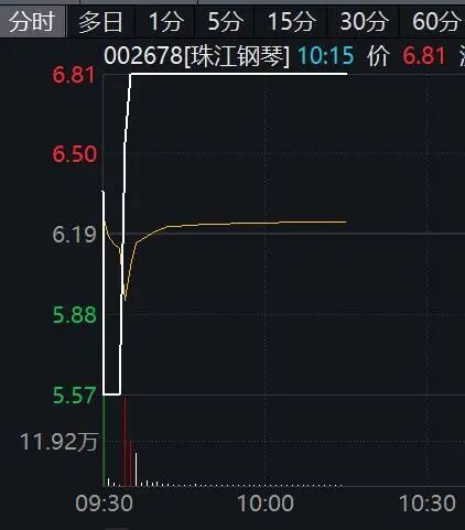 个股方面,珠江钢琴(002678)盘中涨停,上演“地天板”,现报6.81元,成交额超5亿元。此前,珠江钢琴走出5天3板。10月23日晚间,珠江钢琴公告,近期公司经营情况及内外部经营环境未发生重大变化;公司未发现近期公共传媒报道了可能或已经对公司股票交易价格产生较大影响的未公开重大信息。