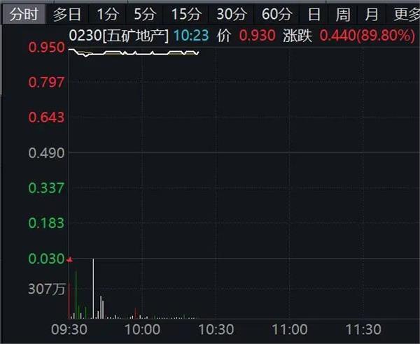 港股五矿地产复牌一度涨超90%。