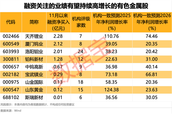 月内获得融资加仓的个股中,有9股获得5家以上机构评级,且机构一致预测2025—2026年业绩有望持续收获超20%的增长。