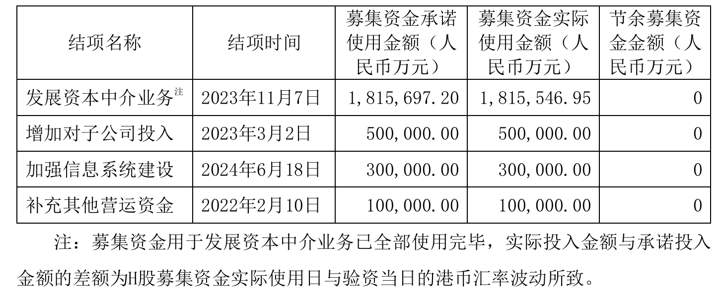 ? 本次结项的募投项目名称:发展资本中介业务、增加对子公司投入、加强信息系统建设及补充其他营运资金。