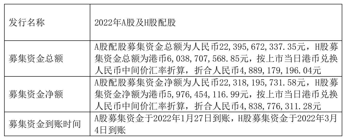为提高资金使用效率,鉴于公司2022年A股及H股配股的募投项目已全部结项,公 司拟将节余募集资金人民币9,721.43万元(截至目前账户余额,具体金额以资金转出 当日银行结算余额为准)永久补充流动资金。尚未支付的发行费用,公司将使用自有资 金支付。 同时,公司将于近期注销在中信银行北京瑞城中心支行开立的A股配股的募集资金 专户。A股配股的募集资金专户注销后,公司与开户银行、保荐机构签订的募集资金监 管协议相应终止。