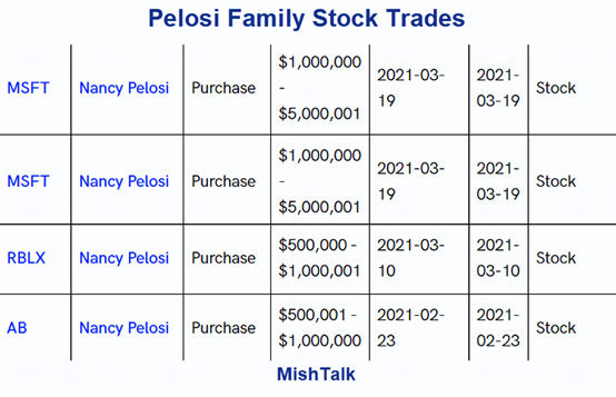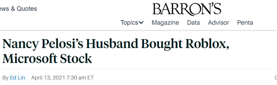 美国众议院议长佩洛西(Nancy Pelosi)的丈夫保罗(Paul Pelosi)被指在期权交易方面风生水起。据报道,4月9日的财务披露显示,保罗上个月通过看涨期权买入了大量$微软(MSFT.US)$公司和游戏平台$Roblox Corporation(RBLX.US)$的股票。