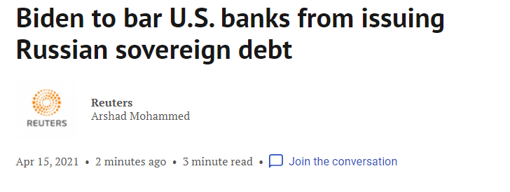 据外媒报道,美国官员称,拜登将从6月14日起禁止美国银行参与以卢布计价的俄罗斯主权债务的一级市场。限制俄罗斯主权债务是对俄罗斯干预2020年美国大选的直接回应。