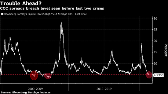 评级最低的垃圾债券CCC级债券可能正在拉响警报。