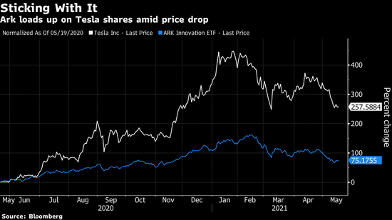 5、特斯拉逼近年内低点,木头姐仍在加仓