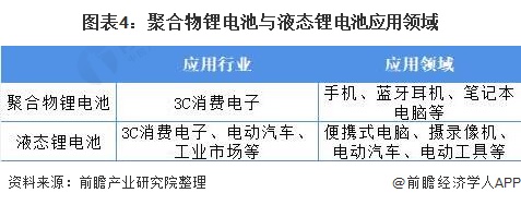 聚合物锂电池具有薄形化特征,从而可以配合产品需求。聚合物锂离子电池主要应用于手机、蓝牙耳机、笔记本电脑等。随着其技术的不断成熟,价格不断下降,聚合物锂离子电池的潜在应用领域包括电动汽车、小型电台及对讲机、电动自行车、军事领域等。