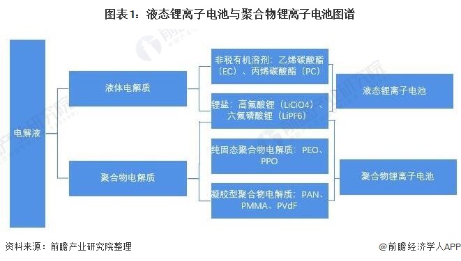 锂离子电池可分为液态锂离子电池与聚合物锂离子电池,聚合物锂离子电池由液态锂离子电池发展而来,聚合物电解质除有机溶剂与锂盐外,还包含纯固态/凝胶型聚合物。