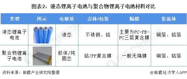 由于液态锂离子电池与聚合物锂离子电池所用的正负极材料相同,区别主要在于电解质,液态锂离子电池的电解质为液态,聚合物锂离子电池的电解质为半固态胶体或纯固态。