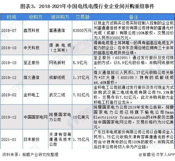 前瞻收集整理了2018-2021年4月以来,我国国内企业发起的收购并购事件。可以发现,这些收购并购事件中,被并购方不仅有国内企业,还包括一些国外地区的企业。国内的市场在过度饱和的情况下,国内的电线电缆企业也开始谋求出海之路。