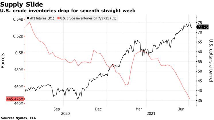 随着封锁措施的放松和驾车出行的回升,在7月4日假期周末前的一周,美国能源信息署(EIA)数据显示,美国的汽油需求创下了1990年有记录以来的历史新高。需求反弹加上全球大型生产商有限供应的增加,将汽油价格推高至2014年以来的最高水平,并在华盛顿敲响了通胀警钟。