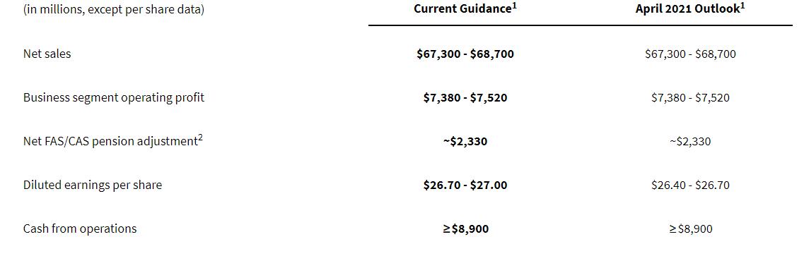 洛克希德公司在财报中提高了其对今年全年的预估:公司2021财年每股收益上修至26.70-27美元(4月预估为26.40-26.70美元)。
