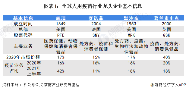 1、全球人用疫苗行业龙头企业全方位对比