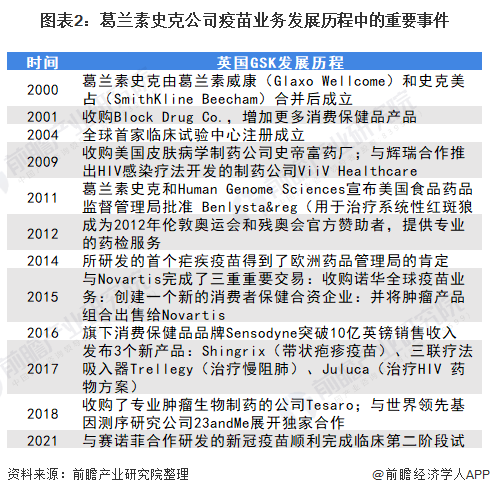 2、葛兰素史克公司:疫苗业务布局历程