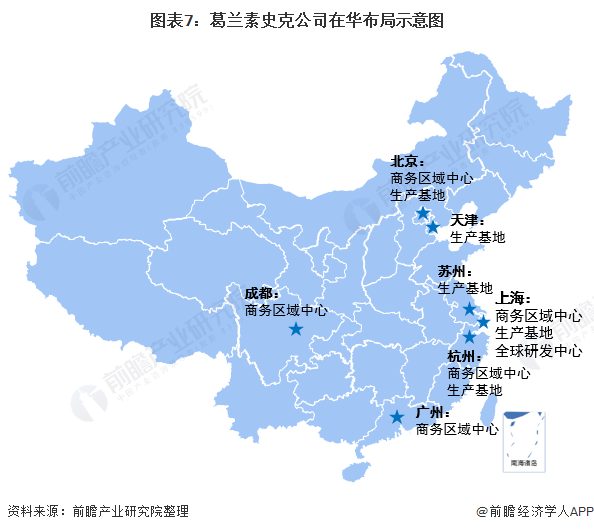 从在华布局来看,根据葛兰素史克官网信息,在中国业务覆盖250个城市;以北京、上海、广州、杭州和成都为5大商务区域中心;5个生产基地坐落于上海、苏州、杭州和天津;一个全球研发中心位于上海浦东。