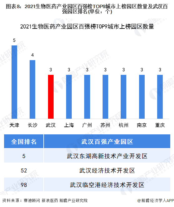 近年来,武汉不断加大生物医药产业园的建设,在赛迪顾问与新浪医药联合发布的《2021生物医药产业园区百强榜》中,武汉有3个园区上榜,上榜园区数量仅次于天津和长沙,其中坐拥光谷生物城的武汉东湖高新技术产业开发区位居全国第五。